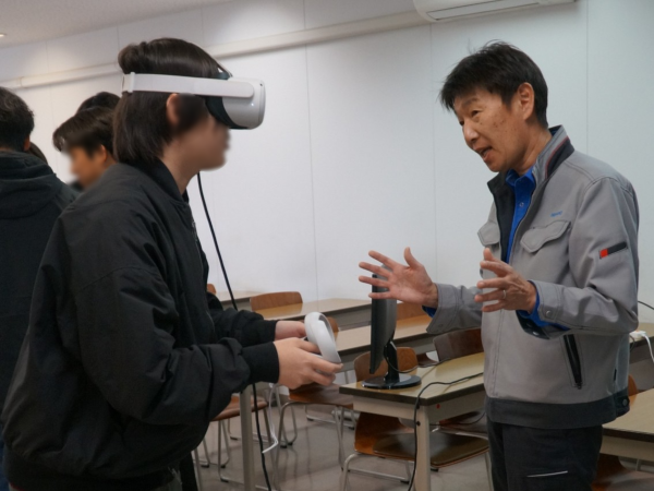 講義では、BIM/CIMを活用した建設現場の効率化やICTを活用した調査・設計から施工、維持管理に至るまでのデジタル技術の活用について解説しました。また、講義後にはVRヘッドセットを使用した建設現場の体験も実施。質疑応答では、DX導入による現場の変化やコスト削減の効果などについて質問が寄せられました。今回の講義が学生たちにとって建設業の先進技術を身近に感じる貴重な学びの機会となれば幸いです。