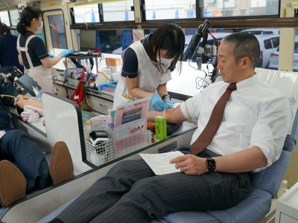 弊社駐車場で、移動献血車「ひまわり号」によるR6年度1回目の献血を行いました。