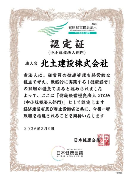 健康経営優良法人2026(中小規模法人部門)に認定 (R8.03.09)
