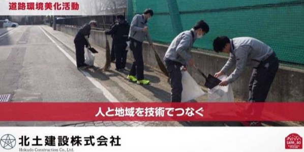 弊社が施工中の電線共同溝新設工事現場付近(南4条西14丁目~南8条西15丁目間)の道路環境美化活動を行いました。 |