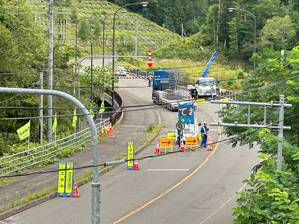 | 一連の施工が完了し、現在、足場の解体を行っております。 特に気温が下がり、路面の凍結が予想される季節となりますので、作業に際しては安全に留意し、交通規制を行っております。 ご通行の皆様には引き続きご協力をお願いいたします。 |