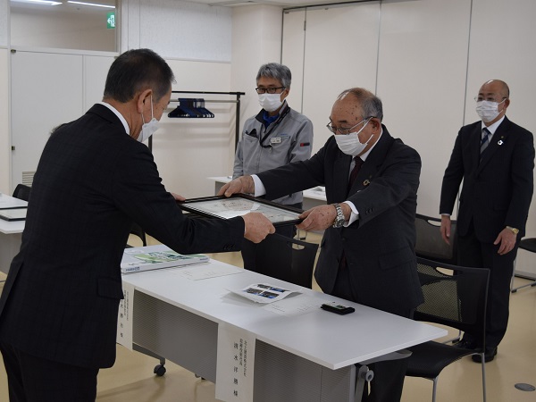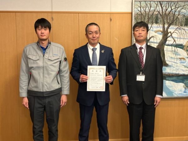三笠市が所有する土地の草刈り作業に協力し、三好智幸企画財政部長より感謝状をいただきました。