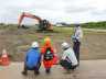 8月4日、建設業への理解を深めてもらうため、札幌開発建設部と札幌建青会の共催による親子現場見学会「親子で体験!楽しく建設業の仕事を学びます」を石狩川改修工事の内 北村遊水地雁里沼工区周囲堤工事の現場で開催しました。 |