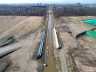 | 7月中旬の橋げたの架設から作業は順調に進み、橋の上のアスファルト舗装をする準備作業として調整コンクリートの打設を行いました。 9月の主な作業としては、橋の前後の路面の段差発生を抑制するための『踏掛版』という構造物を施工してまいります。 鉄筋組立とコンクリート打設が多い作業となりますのでコンクリート運搬車両の往来が増え、現場周辺にお住いの皆様方には何かとご不便をおかけいたしますが、安全第一で工事を進めてまいりますのでご理解の程よろしくお願いいたします。 |