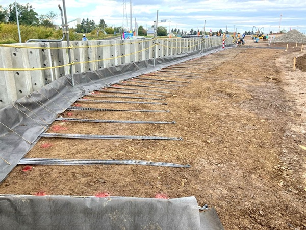 | 7月は引き続き土砂運搬と盛土作業を実施します。また、盛土の一部ですべり抵抗性を高めるため、特殊な強化シート「ジオグリッド」を敷設します。 夏季の高温により熱中症のリスクが高まりますので、休憩や水分補給を十分に行い、安全第一で作業してまいります。近隣の皆様におかれましても熱中症にはくれぐれもご注意ください。 引き続きご不便をおかけいたしますが、ご理解とご協力を賜りますようお願い申し上げます。 |