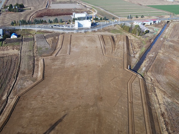 | 現在、工事に先立ち、ドローンによる現況地盤の計測や土質調査などの準備作業を進めております。ゴールデンウィーク前は、現場の囲いや仮設施設の設置を中心に進め、連休明けから本格的な工事に着手いたします。 南幌町から本工事現場までの土砂運搬や排水整備を予定しており、大型車両の通行などでご不便をおかけする場合もございますが、安全に十分配慮しながら進めてまいります。近隣の皆様には、ご理解とご協力を賜りますようお願い申し上げます。 |